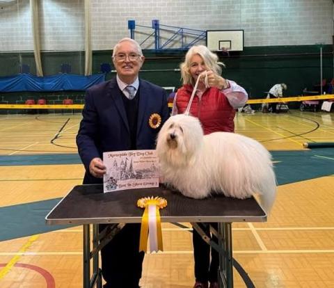 Martha first show was Hyde and District Canine Society. At just 6 months old she won Best AVNSC puppy in a big group. Then awarded TOY PUPPY GROUP 1 -judge Lee Grogan.