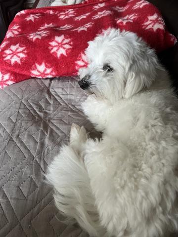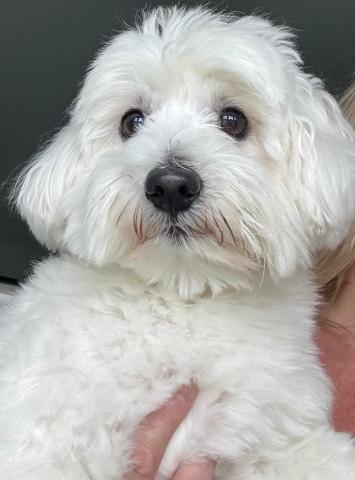Cukoton Hocus Pocus (Chewie). He has a lovely temperament, he’s loving, gentle. A smaller male 11 inches But within the Coton de Tulear Standard. He has excellent confirmation and movement. His front is very straight, tail set low, ears high set. Fully intact male with good rear drive. He has a good textured coat of correct texture full coat. Chewie has full pigmentations throughout and the correct scissor bite. Chewie is FULLY DNA TESTED FOR ALL 10 Health Disorders that can affect the Coton de Tulear.