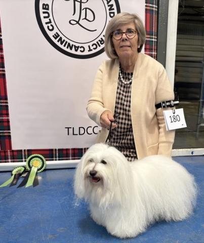 Fergie started his show career in October 2022 winning 1st puppy Dog and BEST PUPPY IN BREED at Midland Counties Championship show. LKA championship show BEST PUPPY IN BREED & RESERVE BEST DOG, Crufts 2023 Best Puppy Dog, Hamilton open show BEST PUPPY IN BREED & PUPPY GROUP 1, Rutherglen Open Show, Best AVNSC PUPPY & BEST AVNSC, Scottish Toy Dog premier show 1st Coton de Tulear post graduate, BEST PUPPY IN BREED, PUPPY GROUP 3. What a wonderful start to Fergie & Jennifer's show career