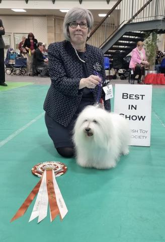 Fergie started his show career in October 2022 winning 1st puppy Dog and BEST PUPPY IN BREED at Midland Counties Championship show. LKA championship show BEST PUPPY IN BREED & RESERVE BEST DOG, Crufts 2023 Best Puppy Dog, Hamilton open show BEST PUPPY IN BREED & PUPPY GROUP 1, Rutherglen Open Show, Best AVNSC PUPPY & BEST AVNSC, Scottish Toy Dog premier show 1st Coton de Tulear post graduate, BEST PUPPY IN BREED, PUPPY GROUP 3. What a wonderful start to Fergie & Jennifer's show career