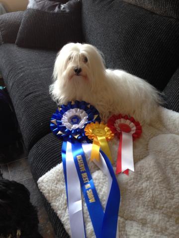 Lottie at 13 months old won RESERVE BEST DOG IN SHOW, came 2nd at Crufts the same year. Lottie has a very sweet nature, extremely loving nature. She will nurture any puppy hers or anothers.