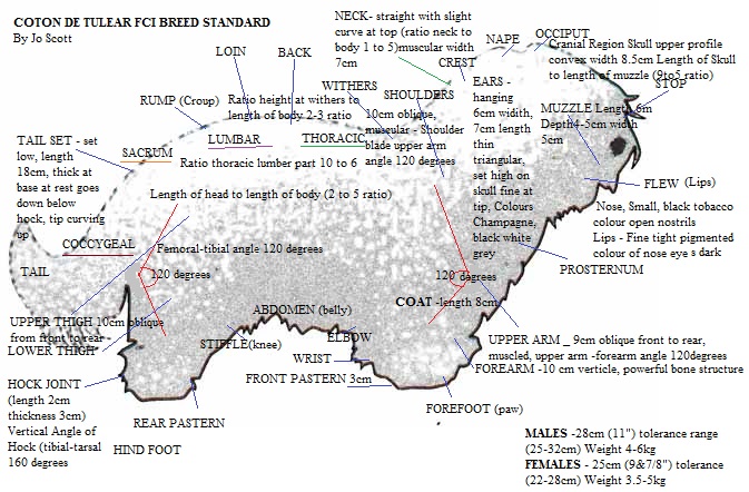 Below is The Official Kennel Club Coton de Tulear Breed Standard of the United Kingdom in green, illustrated for the CDT Club of the United Kingdom by Jo Scott of Cukoton COTON DE TULEAR